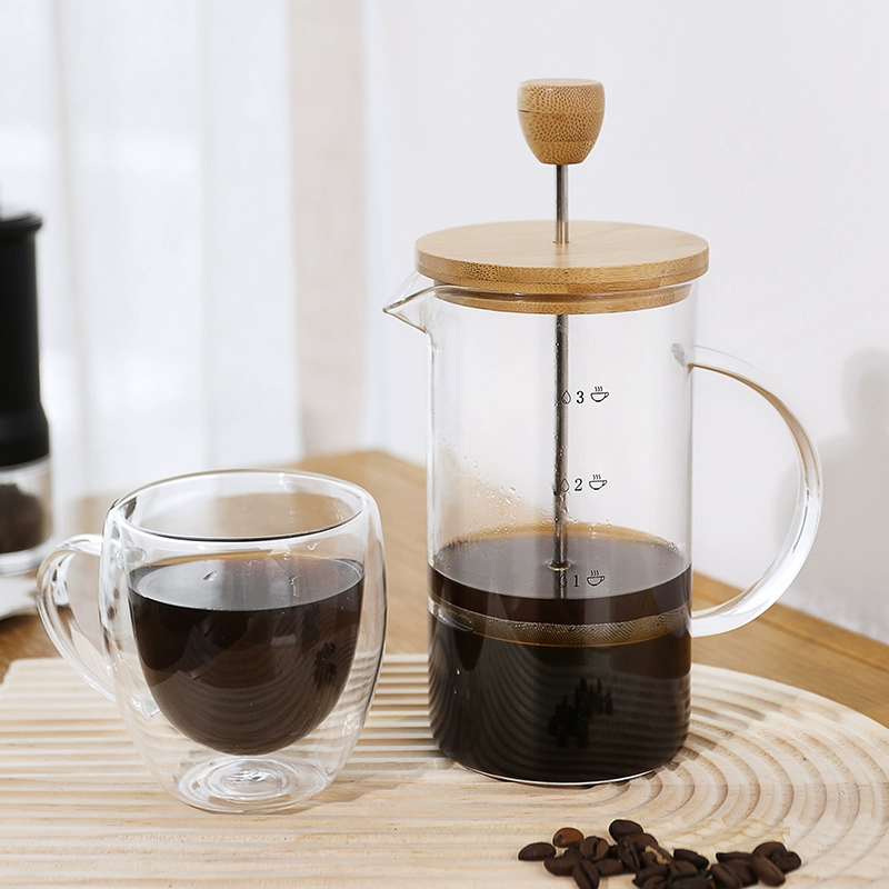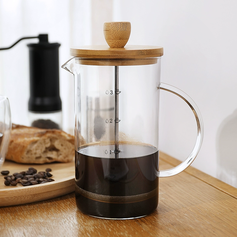 - Der Deckel und der Kolbengriff aus natürlichem Bambus sorgen für eine minimalistische, umweltfreundliche Ästhetik.
