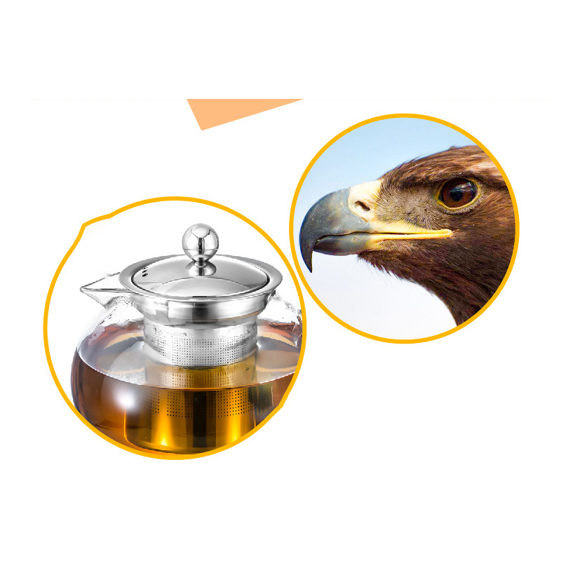 Diese Glasadler-Teekanne ist ein klassisches chinesisches Teeservice. Es besteht aus hochwertigem Glasmaterial mit einem schlichten und eleganten Aussehen und hoher Transparenz, sodass der Wechsel der Teeblätter auf einen Blick erkennbar ist.