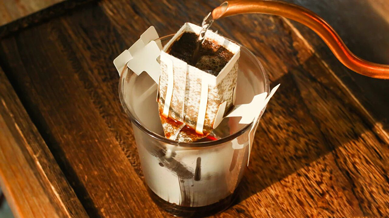 Die Herstellung von Hängekaffee ist sehr einfach, ohne Pulver zu mahlen oder professionelle Brühwerkzeuge vorzubereiten. Wir benötigen lediglich eine Tasse und eine beliebige Wasserflasche, um die Herstellung von Hängekaffee abzuschließen. Der einzige Nachteil besteht darin, dass ihm aufgrund des vorgemahlenen Kaffees ein wenig das Aroma fehlt und er nicht so aromatisch schmeckt wie frisch gemahlener und gebrühter Kaffee. Aufgrund seiner praktischen Beschaffenheit ist Hängekaffee jedoch für viele Freunde, die zur Arbeit, zum Lernen, auf Reisen oder aus anderen Gründen ausgehen, zu einem unverzichtbaren Essen geworden.