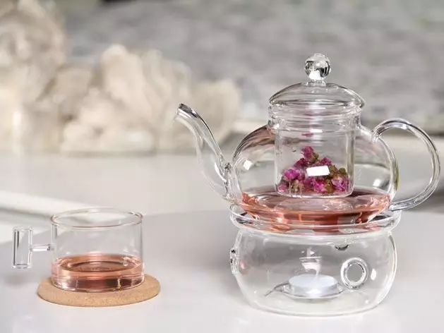 DieTeekanne aus Glashat eine transparente Textur, schnelle Wärmeübertragung und ist nicht atmungsaktiv. Beim Aufbrühen von Tee in einer Glastasse bewegen sich die Teeblätter auf und ab, die Blätter strecken sich nach und nach und die Farbe der Teesuppe ist während des gesamten Brühvorgangs auf einen Blick erkennbar. Der Nachteil ist, dass es leicht zerbricht und heiß zu handhaben ist, aber es ist billig und von hoher Qualität.