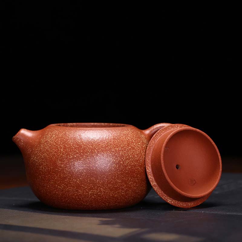 Traditioneller gelber Schlamm, Yixings einzigartiges Schlammsandmaterial, die wichtigsten mineralischen Bestandteile sind Quarz, Ton, Glimmer und Hämatit, bleifrei, cadmiumfrei; Diese Materialteekanne hat eine ganz besondere Porenstruktur und eine hervorragende Luftdurchlässigkeit. Beim Aufbrühen von losem Blatttee bleiben Farbe, Aroma und Geschmack lange erhalten, auch im Sommer verschlechtert sich die Teesuppe nach ein paar Tagen nicht.