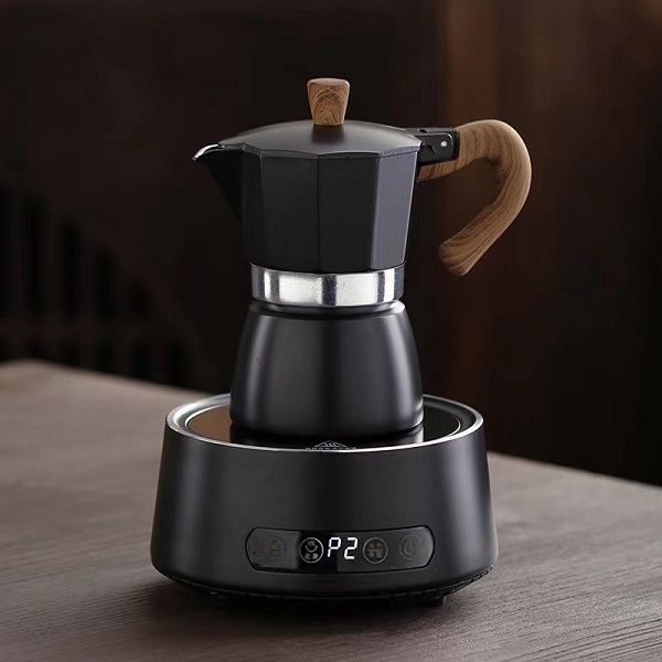 - So bereiten Sie den Kaffee zu: Füllen Sie den Boiler bis zum Sicherheitsventil, füllen Sie ihn ohne zu drücken mit gemahlenem Kaffee auf, schließen Sie die Moka-Kanne und stellen Sie sie auf die Herdplatte. Sobald Moka Express zu gurgeln beginnt, schalten Sie das Feuer aus und der Kaffee ist fertig
